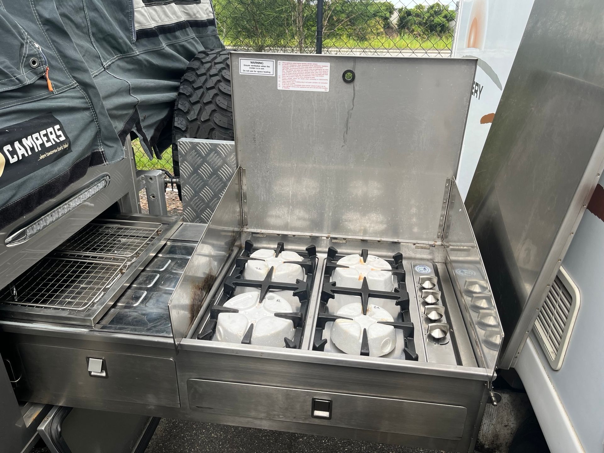 External slide out stainless steel kitchen